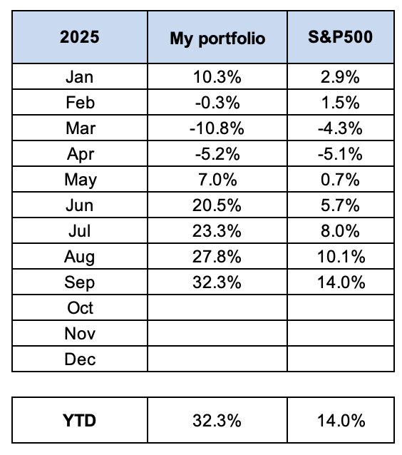 My performance as of end of September ’25