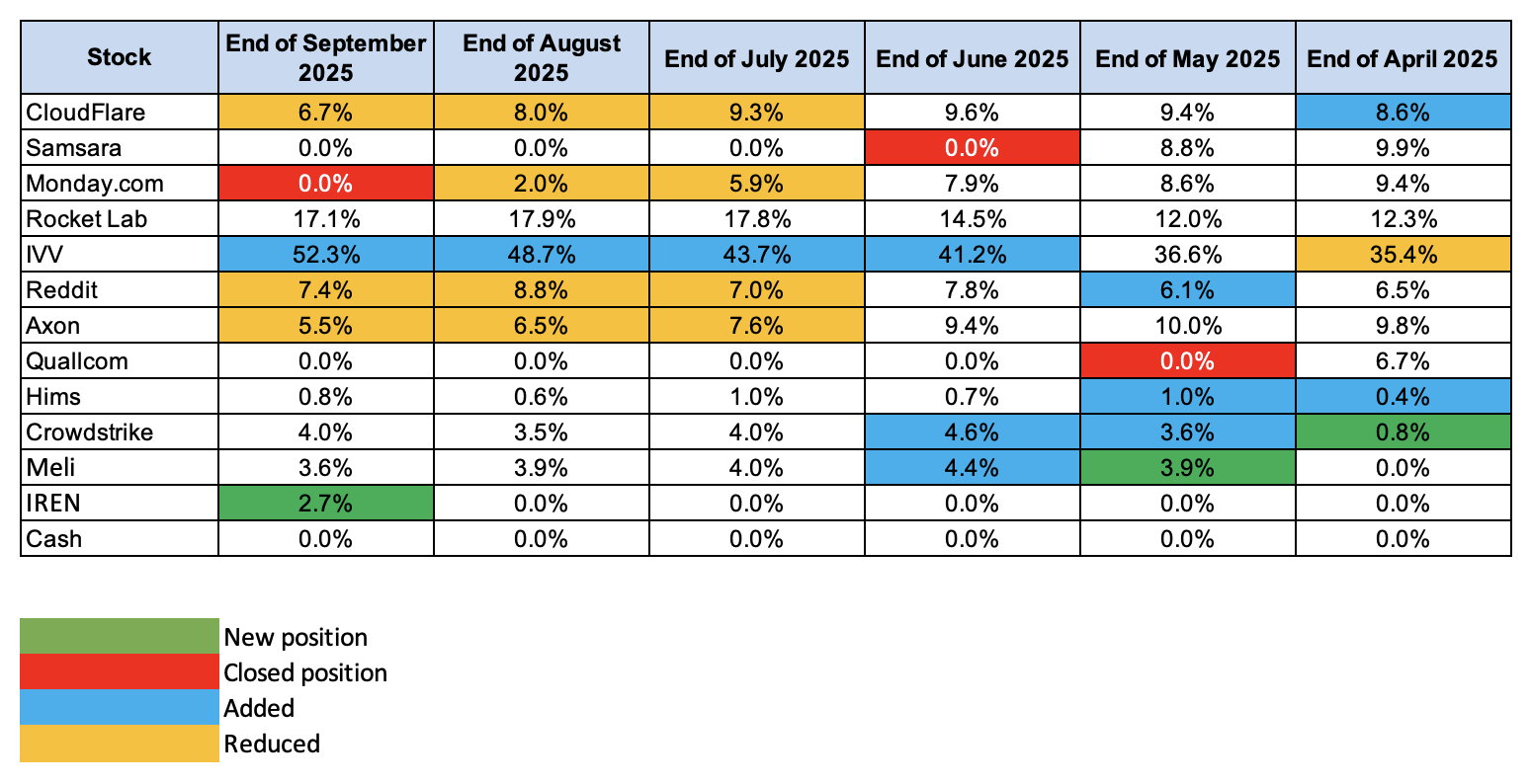 My allocations as of end of September ’25
