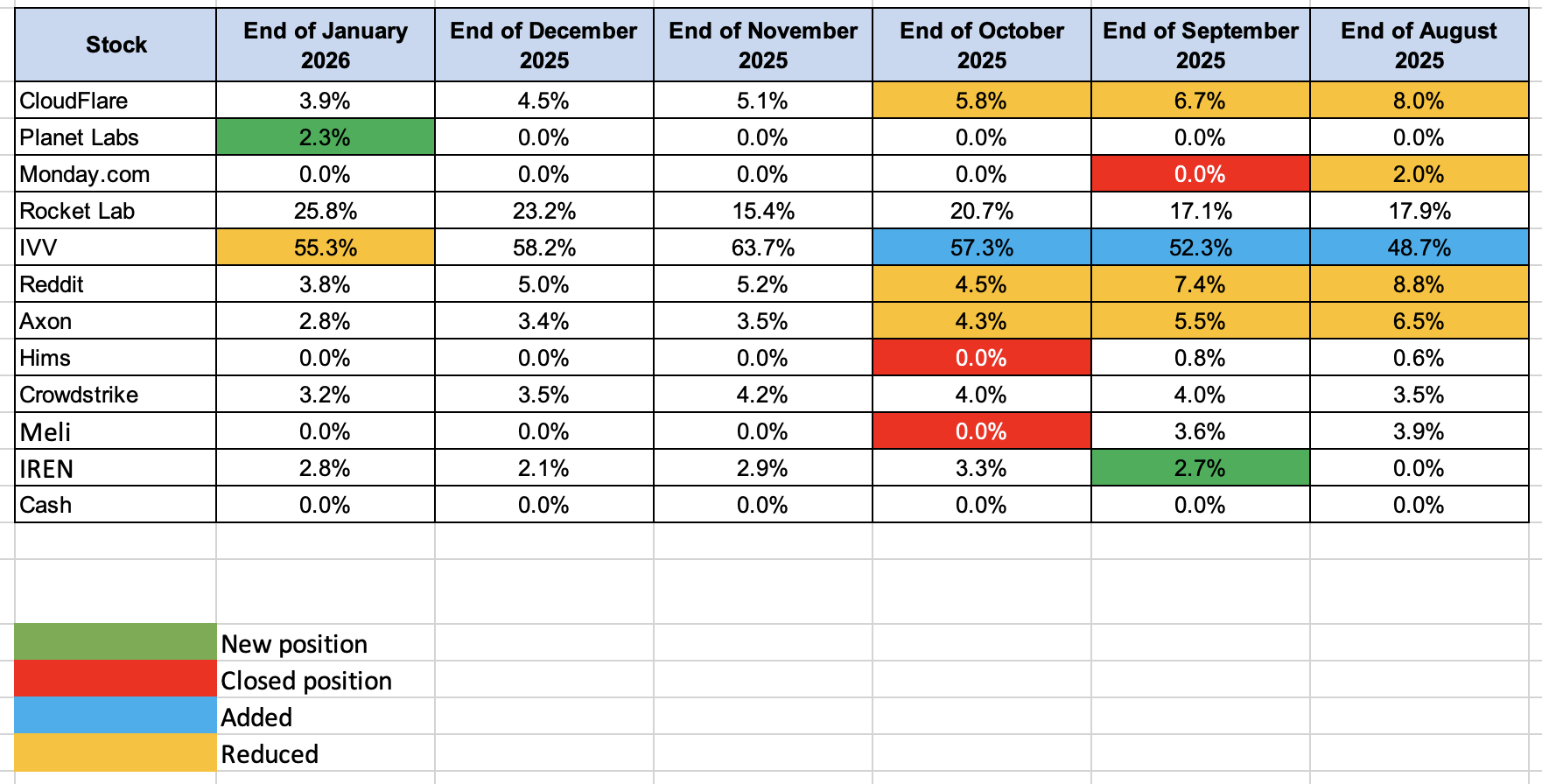 My allocations as of end of January ’26